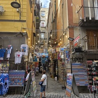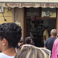Vi har vært på den originale Antica Pizzeria da Michel Napoli (samme kjede som omtalt under Firenze). Grei kø på en torsdags ettermiddag, folk satt overalt og spiste pizzaen, da det ikke var plass inne i restauranten. Se bilder nedenfor.